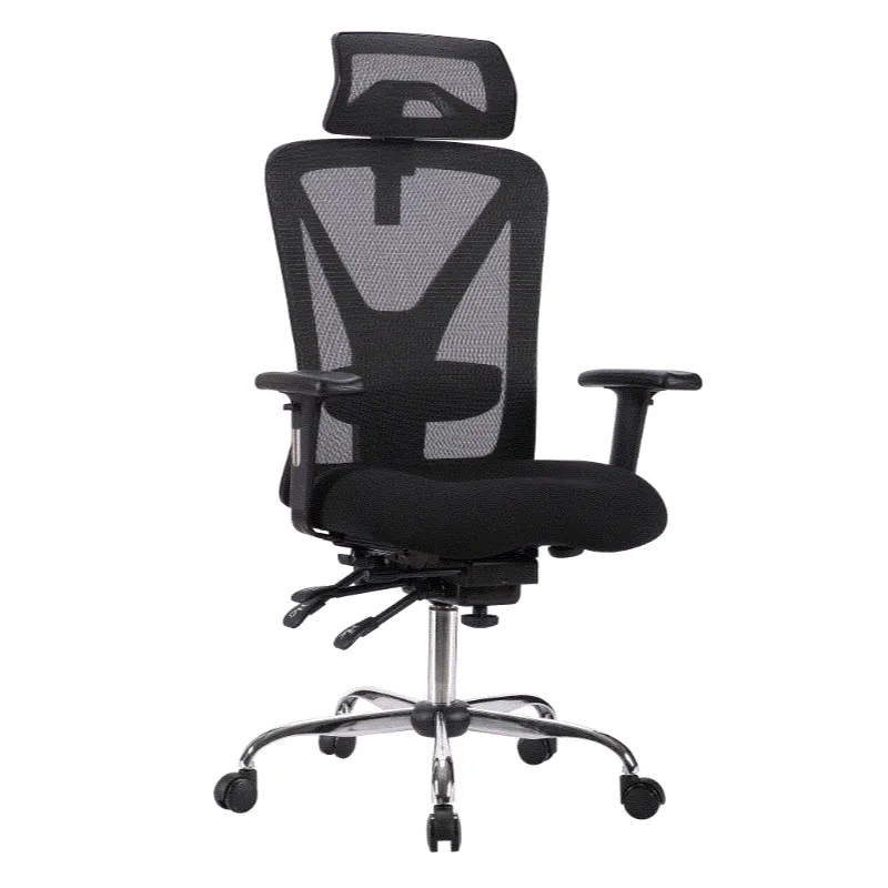 The Diamond Executive Office Chair is a sophisticated and highly functional seating solution designed for optimal comfort and support. Its advanced ergonomic quad lever system allows for precise adjustments, while the seat slide function ensures a personalized fit for various body types. The chair features a high back with excellent lumbar support and a ratchet height-adjustable backrest, conforming to the natural curve of your spine. An adjustable headrest provides added neck support, crucial for long hours of work. Constructed with a commercial-grade mesh back for breathability and a durable fabric seat, the chair is built to last. The sleek design is completed with a polished chrome gas strut and base. With a robust load rating of 180KG and a generous warranty—10 years for structural components and 3 years for foams and fabrics—this chair is a reliable investment. It is also available in both black fabric and black PU.