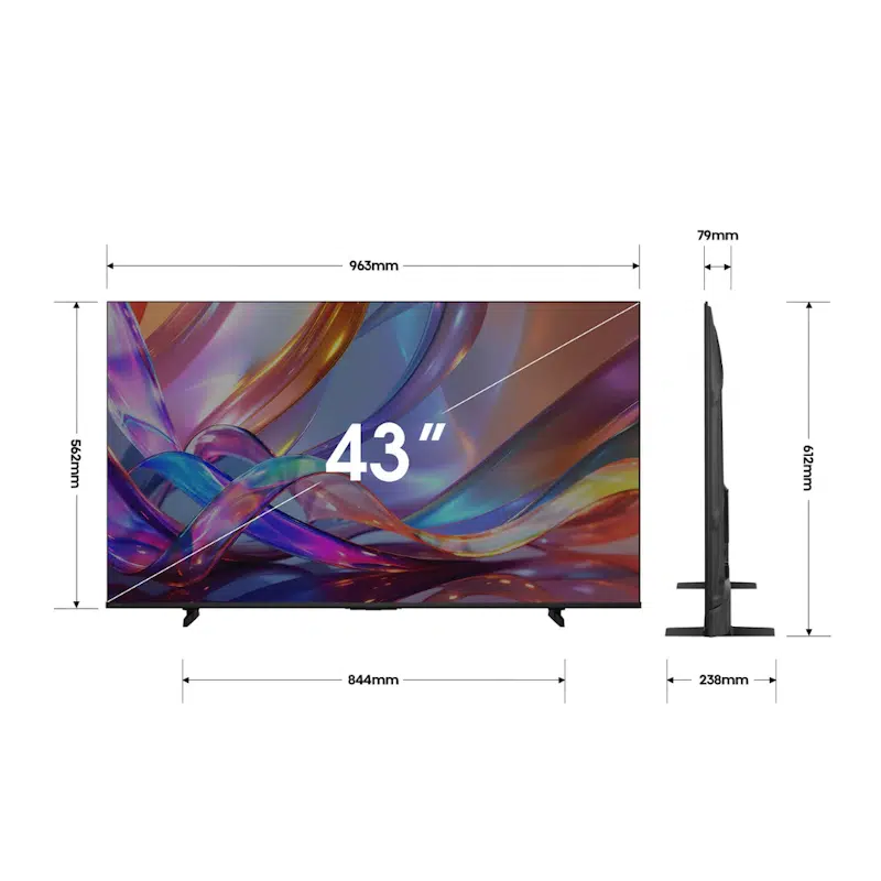 Elevate your viewing experience with the Hisense 43Q6SAU, a compact powerhouse designed for Australian bedrooms, apartments, and smaller living spaces. Combining Hi-QLED Colour technology with the intelligent AI 4K Upscaler, this 43-inch Smart TV ensures that everything you watch is bursting with lifelike detail and vibrant contrast.