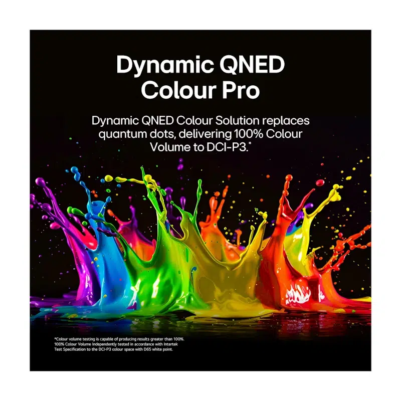 Dynamic QNED Colour Pro: Enjoy a rich spectrum of lifelike color. Certified for 100% Colour Volume (DCI-P3), this technology ensures that colors remain vivid and accurate even at high brightness levels, outperforming traditional displays.