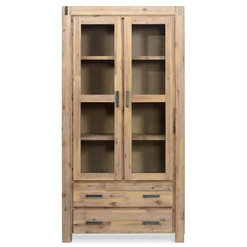 Beautiful…. the best way to describe. Made with Hardwood Acacia timber in a stunning Driftwood colour and has antique metal features, this complete range is elegant in its’ simplicity. Also available is a full range of extra pieces – you could fill your Bedroom, Office or Dining or Living rooms with this collection and be more than happy for many years! Sanava Display Cabinet has two large drawers with metal sliders and glass doors.